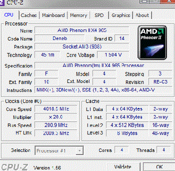 | Процессор (ядро) | AMD Phenom II X4 (Deneb) |