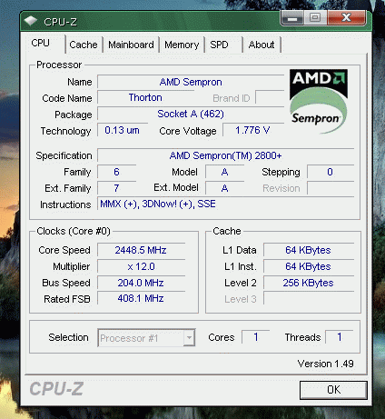 Результат разгона AMD Sempron (Thorton)