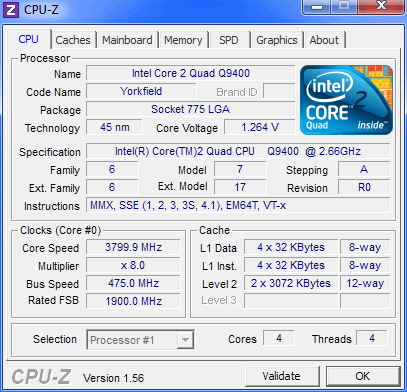 Результат разгона Intel Core 2 Quad (Yorkfield)