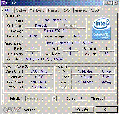 Результат разгона Intel Celeron D (Prescott-256)