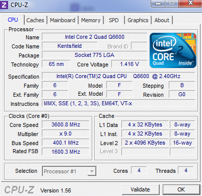 | Процессор (ядро) | Intel Core 2 Quad (Kentsfield) |