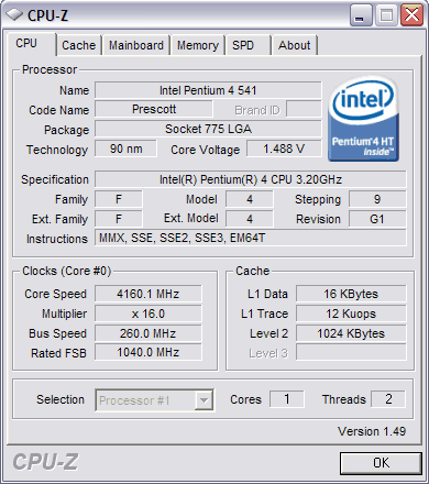 | Процессор (ядро) | Intel Pentium 4 (Prescott) |