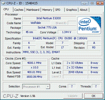 Результат разгона Intel Pentium Dual-Core (Wolfdale-2M)