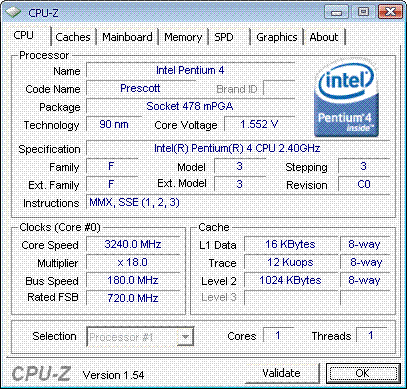 Результат разгона Intel Pentium 4 (Prescott)