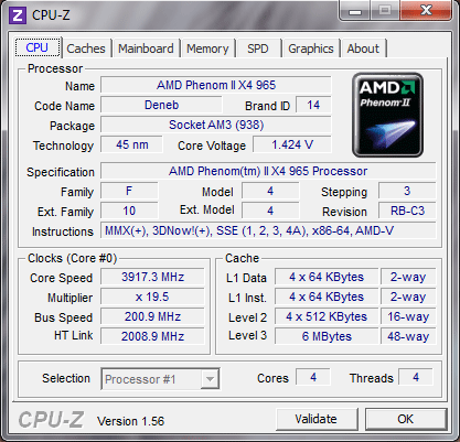 | Процессор (ядро) | AMD Phenom II X4 (Deneb) |