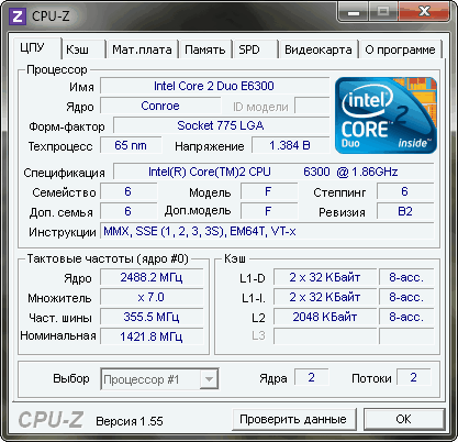 | Процессор (ядро) | Intel Core 2 Duo (Conroe-2M) |