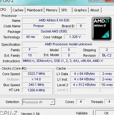 | Процессор (ядро) | AMD Athlon II X4 (Propus) |