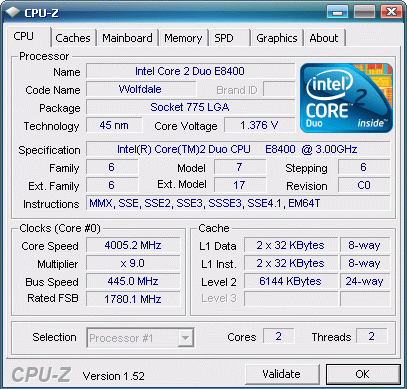 Результат разгона Intel Core 2 Duo (Wolfdale)