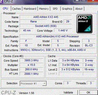 | Процессор (ядро) | AMD Athlon II X3 (Rana) |