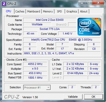 Результат разгона Intel Core 2 Duo (Wolfdale)