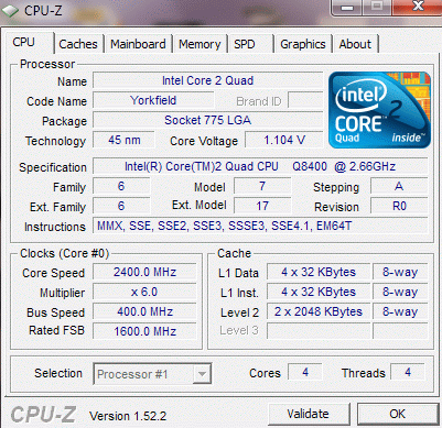 | Процессор (ядро) | Intel Core 2 Quad (Yorkfield) |