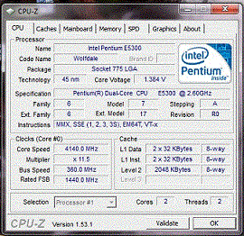 Результат разгона Intel Pentium Dual-Core (Wolfdale-2M)