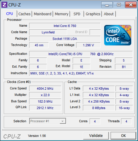 | Разгон, максимально стабильная частота (FSB x Ratio) | 4004 (182 x 22.0) |