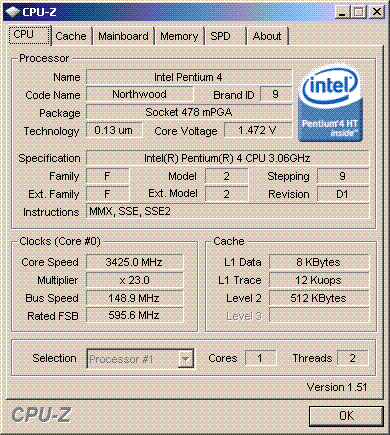 | Процессор (ядро) | Intel Pentium 4 (Northwood) |
