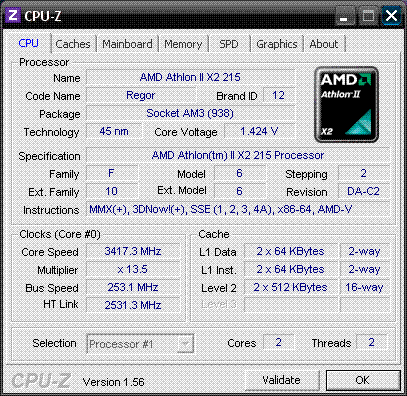 | Процессор (ядро) | AMD Athlon II X2 (Regor) |