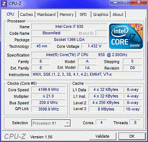 | Разгон, максимально стабильная частота (FSB x Ratio) | 4200 (200 x 21.0) |