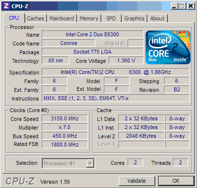 | Процессор (ядро) | Intel Core 2 Duo (Conroe) |