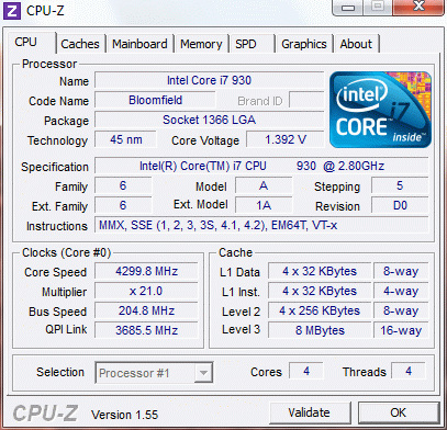 Результат разгона Intel Core i7 (Bloomfield)