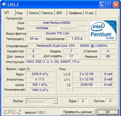 Результат разгона Intel Pentium Dual-Core (Wolfdale-2M)