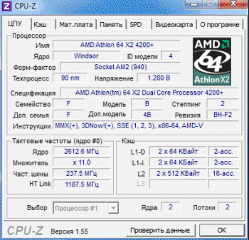 | Процессор (ядро) | AMD Athlon 64 X2 (Windsor) |