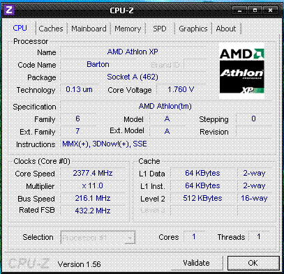 | Процессор (ядро) | AMD Athlon XP (Barton) |