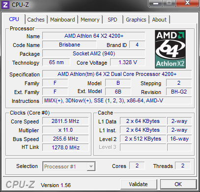 | Процессор (ядро) | AMD Athlon 64 X2 (Brisbane) |