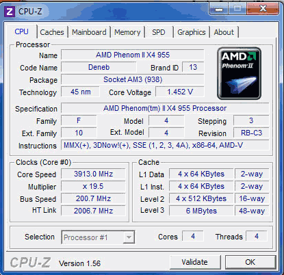 Результат разгона AMD Phenom II X4 (Deneb)