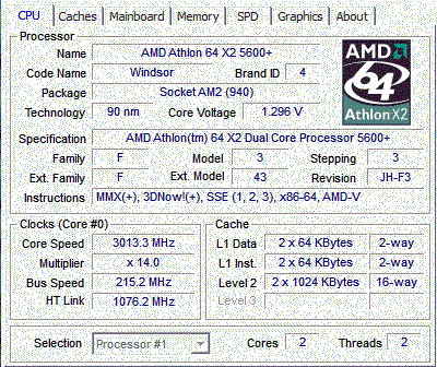 Результат разгона AMD Athlon 64 X2 (Windsor)