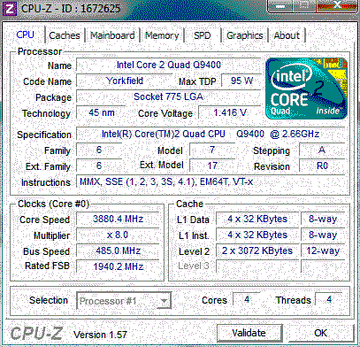 Результат разгона Intel Core 2 Quad (Yorkfield)