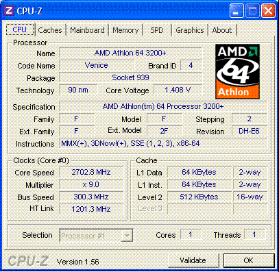 Результат разгона AMD Athlon 64 (Venice)