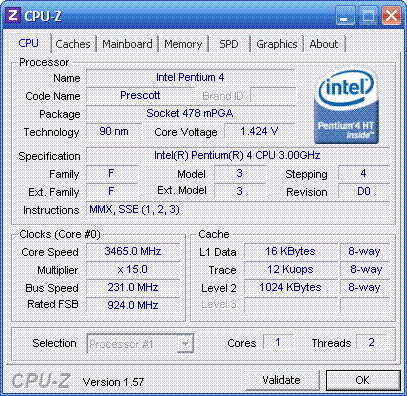 | Процессор (ядро) | Intel Pentium 4 (Prescott) |