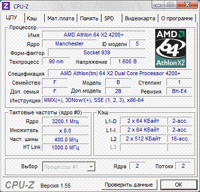 | Процессор (ядро) | AMD Athlon 64 X2 (Manchester) |