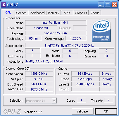 Результат разгона Intel Pentium 4 (CedarMill)