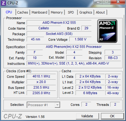 | Процессор (ядро) | AMD Phenom II X2 (Callisto) |