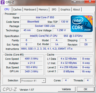 | Разгон, максимально стабильная частота (FSB x Ratio) | 4053 (193 x 21.0) |