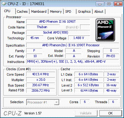 | Процессор (ядро) | AMD Phenom II X6 (Thuban) |