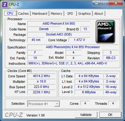 | Процессор (ядро) | AMD Phenom II X4 (Deneb) |