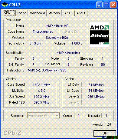 | Процессор (ядро) | AMD Athlon XP (Thoroughbred) |