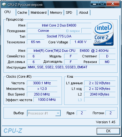 | Процессор (ядро) | Intel Core 2 Duo (Conroe-2M) |