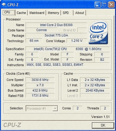 Результат разгона Intel Core 2 Duo (Conroe)