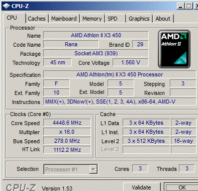 Результат разгона AMD Athlon II X3 (Rana)