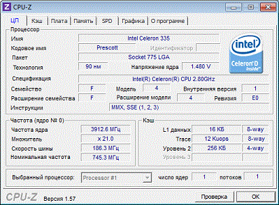 Результат разгона Intel Celeron D (Prescott-256)