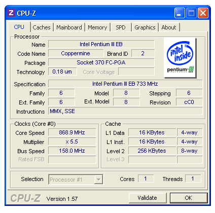 | Процессор (ядро) | Intel Pentium III (Coppermine) |