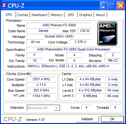 | Процессор (ядро) | AMD Phenom II X4 (Deneb) |