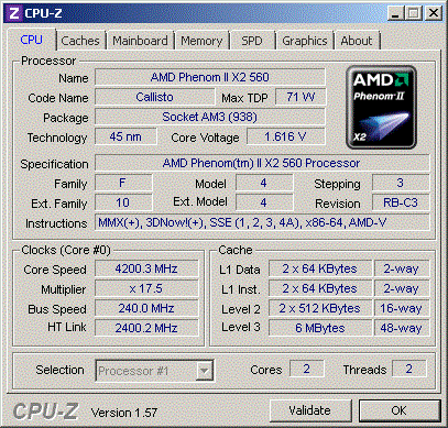 | Процессор (ядро) | AMD Phenom II X2 (Callisto) |