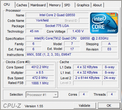 Результат разгона Intel Core 2 Quad (Yorkfield)