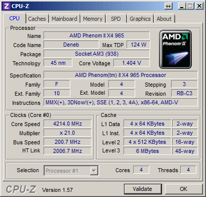 Результат разгона AMD Phenom II X4 (Deneb)