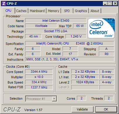 Результат разгона Intel Pentium Dual-Core (Wolfdale-2M)