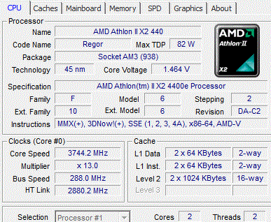 | Процессор (ядро) | AMD Athlon II X2 (Regor) |