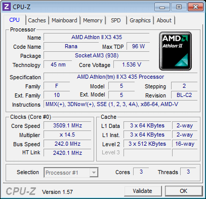 | Процессор (ядро) | AMD Phenom II X3 (Heka) |